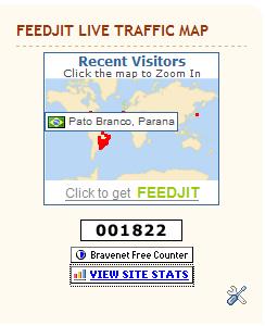 Outra coisa.Temos um novo widget.É o FEEDJIT Live Traffic Map.Com ele conseguimos ver por um mapa de onde vem as visitas.Como demonstrada na foto abaixo.